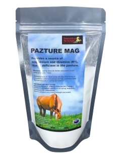Skippy and Benny eating spring grass.[/caption] Power Star Nutrition uses magnesium aspartate which is commonly referred to as organic magnesium, and its biological uptake is much higher than other magnesium supplements. It is also human grade. Vitamin B1 plays a crucial role in the proper transmission of nerve impulses, allowing horses to feel more focused and at ease. If your horse or pony shows any of the symptoms below, they would benefit from daily supplementation of Pazture Mag: - Hates being touched or groomed.