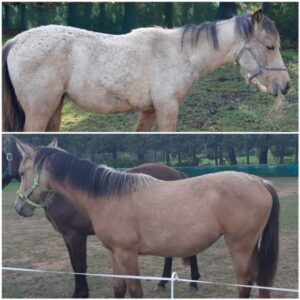 Attached are a couple of photos of our scruffy but very healthy 22-year-old pony broodmare. One is a month before foaling and the other a day after having her seventh and final foal. Both show her Essentials Formula 1, dapples and shine 😁